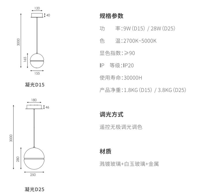 凝光吊灯用双层弯曲的造型作为主要造型特征形成在空间里自由灵动的造型,,,,以一定的角度倾斜,,,,形成丰富的画面,,,,半圆形等分的灯罩采用白玉料与透明溅镀两种工艺,,下路利用直下式光学提供充足光线,,,,上路则采用测发光方式,,,,发光面透过溅镀的玻璃曲面折射出一个光的倒影。。两种方式组合在一起,,,使其在简单的几何形态中有自己的表达。。。